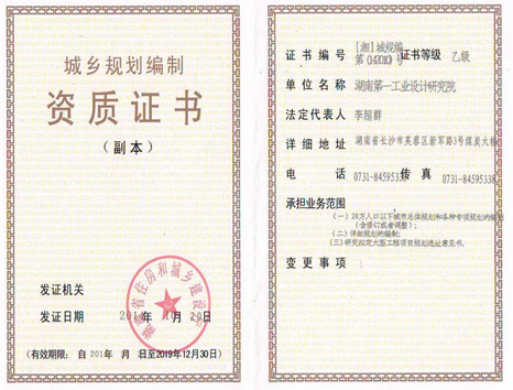 城鄉規(guī)劃編制資質證書